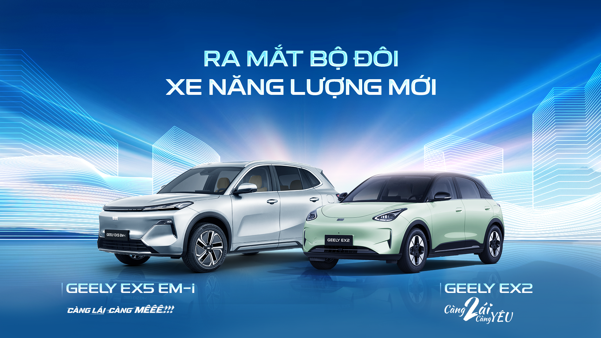 Geely Việt Nam chính thức ra mắt hai mẫu xe năng lượng mới tại thị trường Việt Nam: Geely EX5 EM-i – SUV plug-in hybrid ứng dụng công nghệ hybrid E-Motive Intelligent hoàn toàn mới và Geely EX2 – xe điện cỡ nhỏ thời trang, tiện nghi cho di chuyển đô thị.